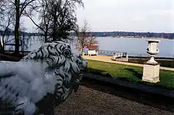 Vista do lago Großer Wannsee a partir da villa 56–58 Am Grossen Wannsee, local da conferência