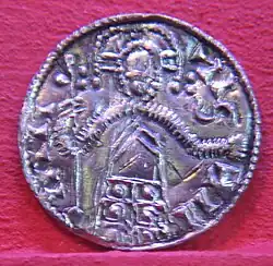 - ↑ Hardacanuto era o filho do rei Canuto, o Grande e Ema da Noruega e, portanto, era o meio-irmão de Eduardo, o Confessor. Ele reinou de 1040-1042 e morreu sem filhos.[13] O pai de Hardacanuto, Canuto, havia derrotado o filho de Etelredo, Edmundo, o Braço de Ferro, em 1016 para reivindicar o trono inglês e se casar com a viúva de Etelredo, Ema.[14] Após a morte de Hardacanuto em 1042, Magno começou os preparativos para uma invasão da Inglaterra, que só foi interrompida por sua morte em 1047.[15]