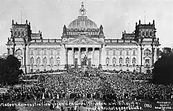 Na Alemanha, houve uma revolução socialista que levou ao breve estabelecimento de uma série de sistemas políticos comunistas em partes (principalmente urbanas) do país, à abdicação do Kaiser Guilherme II e à criação da República de Weimar.