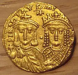 ![]() Soldo de Constantino VI com sua mãe Irene | |