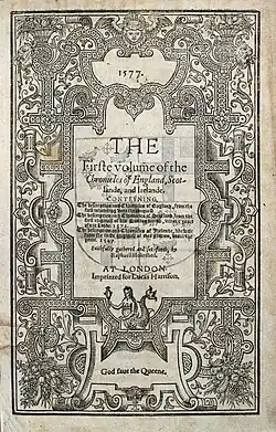 - ↑ «Crônicas de Holinshed, 1577». The British Library. Consultado em 30 de janeiro de 2019. Cópia arquivada em 4 de abril de 2023