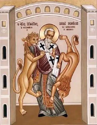 Inácio de Antioquia (também conhecido como Teóforo) foi o terceiro bispo ou patriarca de Antioquia e um estudante do apóstolo João. No caminho para o seu martírio em Roma, Inácio escreveu uma série de cartas que foram preservadas como um exemplo da teologia dos primeiros cristãos. Os tópicos importantes abordados nessas cartas incluem eclesiologia, os sacramentos, o papel dos bispos e o sábado bíblico.[92] Ele é o segundo depois de Clemente a mencionar as epístolas de Paulo.[93]
