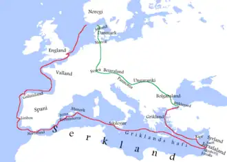 Depois de entrar no Mediterrâneo (Griklands hafi) eles navegaram ao longo da costa da terra dos sarracenos (Serkland) para as Ilhas Baleares. As Ilhas Baleares eram na época percebidas pelos cristãos como nada mais do que um refúgio pirata e um centro escravizador. Os ataques noruegueses também são os primeiros ataques cristãos registrados nas Ilhas Baleares Islâmicas (embora ataques menores certamente tenham ocorrido).[2]