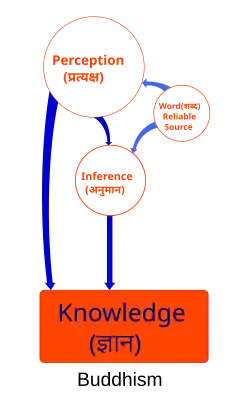 A filosofia de Dharmakīrti é baseada na necessidade de estabelecer uma teoria da validade lógica e da certeza fundamentada na causalidade. Seguindo a Pramāṇasamuccaya de Dignāga, Dharmakīrti também sustenta que existem apenas dois instrumentos de conhecimento ou 'cognição válida' (pramāṇa): "percepção" (pratyakṣa) e "inferência" (anumāna). A percepção é um conhecimento não conceptual de particulares que é limitado pela causalidade, enquanto a inferência é racional, linguística e conceptual.[2] Na Pramāṇavārttika, Dharmakīrti define um pramana como uma "cognição confiável". O que significa para uma cognição ser confiável tem sido interpretado de diferentes maneiras. Seguindo comentaristas como Dharmottara, que a definem como significando que a cognição pode levar à obtenção do objeto desejado, alguns estudiosos modernos, como Jose I. Cabezon, interpretaram Dharmakīrti como defendendo uma forma de Pragmatismo.[13] Tillemans o vê como defensor de uma forma fraca de teoria da correspondência, que sustenta que "confirmar a eficácia causal" (arthakriyāsthiti) é ter uma justificativa de que um objeto de cognição tem os poderes causais que esperávamos.[2] Essa justificativa vem através de um certo tipo de percepção não conceptual (pratyakṣa) que é dita ser uma "fonte de conhecimento intrínseca" (svataḥ prāmāṇya) que é, em última instância, confiável. Dharmakīrti vê uma cognição como válida se ela tem uma conexão causal com o objeto de cognição através de uma percepção intrinsecamente válida e não conceptual do objeto que não erra quanto à sua funcionalidade. Como Dharmakirti diz: "Um pramāṇa é uma cognição confiável. [Quanto à] confiabilidade, ela consiste na [desta cognição] conformidade com [a capacidade do objeto de] realizar uma função" (Pramāṇavārttika 2.1ac).[5]