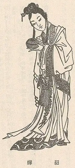 ![]() Diaochan. Ilustração numa edição da Dinastia Quingue da História dos Três Reinos | |