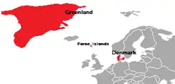 - ↑ «Greenland and the Faroe Islands». Ministry of Foreign Affairs Denmark. Consultado em 18 de dezembro de 2023. Cópia arquivada em 18 de dezembro de 2023