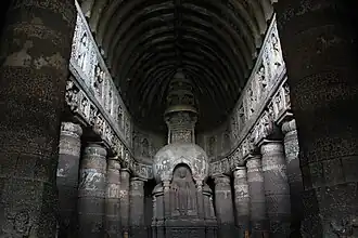 Gruta XIX de Ajanta, escavada durante o reinado de Harixena