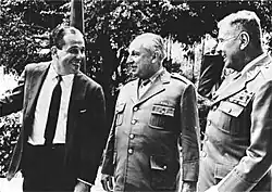 O III Exército, em Porto Alegre, ficou em 1961 com Nestor Penha Brasil, apoiador da posse de Goulart.[126] Em 1962, após a queda do gabinete de Auro de Moura Andrade e antes da nomeação do gabinete seguinte, ele foi substituído por Jair Dantas Ribeiro, que foi importante aliado na antecipação do plebiscito do parlamentarismo.[127] Após a ascensão de Jair ao Ministério da Guerra, o cargo passou ao general Benjamim Rodrigues Galhardo.[46] O Conselho de Segurança Nacional discordou dessa decisão; para o capitão-de-mar-e-guerra Ivo Corseuil, chefe do SFICI em 1964, foi uma escolha desastrosa, e o correto teria sido nomear o general Ladário Pereira Teles.[128] Galhardo era considerado leal,[129] mas a conspiração estava presente dentro de seu próprio quartel-general, embora ele não participasse.[130] Em março de 1964 o governo já havia decidido por sua substituição.[131] Ela ocorreu em 1º de abril, já durante o golpe, com a posse do general Ladário.[132]