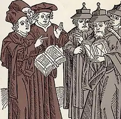 Martinho Lutero iniciou a Reforma Protestante demandando uma disputa sobre suas 95 teses, em 31 de Outubro de 1517. Apesar de apresentada como um chamado para uma disputa escolástica comum, o debate oral nunca ocorreu.[carece de fontes]