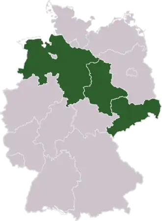 Sob Luís o Germânico e os seus sucessores, a Saxônia, somada à Turíngia, tornou-se um dos quatro ducados da Frância oriental que era composto pelo ducado da Suábia, Francônia e Baviera (compreendendo Morávia e a Caríntia). Este primeiro ducado de Saxônia, que foi governado sucessivamente por soberanos descendentes de Viduquindo e dos príncipes da Casa de Bilunga, correspondendo primeiro ao que formaria depois o Círculo Imperial da Baixa Saxônia e o Círculo Imperial do Baixo-Reno-Vestfália.