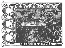 ![]() Elfo dá um golpe de espada mortal no seu irmão Ínguino, sentado junto a Bera. Gravura de Gerhard Munthe. | |
