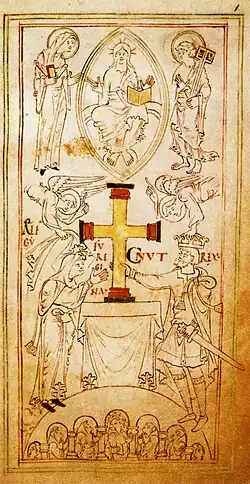 ![]() Iluminura de 1031 representando Canuto, o Grande e Elgiva | |||||