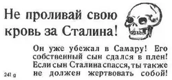 Panfleto alemão em russo de 1941: "Não derrame seu sangue por Stalin".