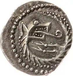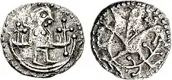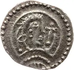 | Anverso: busto diademado com cruz | Reverso: lobo serpenteado com língua enrolada virada à direita |