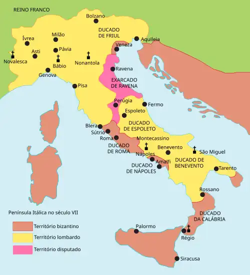 ![]() Itália bizantino-lombarda, século VII | |||||