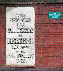 - ↑ «Cathedral announces first step in interment process». Diocese de Leicester. 12 de fevereiro de 2013. Consultado em 1 de abril de 2015. Arquivado do original em 14 de abril de 2013
