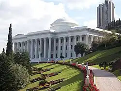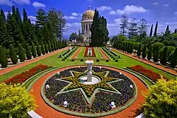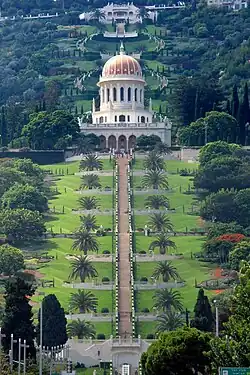 ![]() Casa Universal de Justiça, o corpo governante dos bahá'ís, no Centro Mundial Bahá'í, em Haifa, Israel. | |