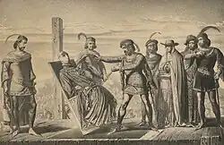 Sobre um grande tablado visível a grande distância, os conjurados colocaram uma estátua de madeira que representava ao rei vestido de luto e enfeitado com a coroa, o bastão e a espada reais.