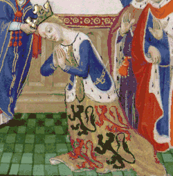 ![]() Pintura de autoria de Jean Froissart que representa a coroação da rainha. | |||||
