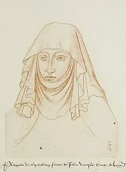 ![]() Ilustração do século XVI de Filipa por Jacques Le Boucq. | |