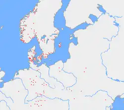 ![]() A Pedra Kylver, notável por listar todos os caracteres rúnicos do futhark antigo | |