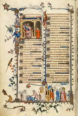 Jean de Vaudetar, moço de câmara do Rei Carlos V de França, apresenta sua doação de um manuscrito ao Rei, 1372.