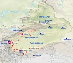 Historicamente, várias dinastias chinesas exerceram controlo sobre partes da Sinquião atual.[56] A região está sob controlo chinês como resultado da expansão para o ocidente da dinastia Qing no século XVIII, em que ocorreram também as conquistas do Tibete e da Mongólia[57]