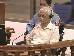 - Nuon Chea, ex-primeiro-ministro, foi indiciado por acusações de genocídio, crimes de guerra, crimes contra a humanidade e vários outros crimes conforme a legislação cambojana em 15 de setembro de 2010. Ele foi transferido para a custódia do ECCC em 19 de setembro de 2007. Seu julgamento começou em 27 de junho de 2011.[104][105] Em 16 de novembro de 2018, foi condenado à prisão perpétua por genocídio.[106]