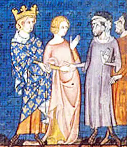 ![]() O casamento de Gisela e Rollo, em representação do século XIV. | |