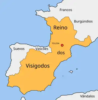 - ↑ Verônica da Costa Silveira (16 de dezembro de 2015). «Os godos na Aquitânia e a Queda do Império Romano Ocidental». Brathair-Revista de Estudos Celtas e Germânicos (15 (2)). pp. 96–97. ISSN 1519-9053. Consultado em 18 de novembro de 2018