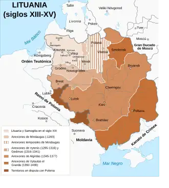 | Capital | Voruta (Hipotético, XIII), Kernavė (1279-1321), Trakai (1321-1323), Vilnius (de 1323) | ||||