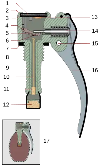 Granadas de mão funcionam de maneira mais ou menos uniforme, sejam elas de explosão, de fragmentação, de fumaça, de impacto, incendiárias, lacrimogêneas, de gás ou com capacidade de iluminar. Um pino ou cavilha de segurança é retirado da granada antes que ela seja lançada, acionando um dispositivo que dispara uma espoleta. A espoleta incendeia-se, detonando a carga explosiva, e a granada explode, rompendo o invólucro. As granadas disparadas por fuzis utilizam a energia propulsora dos projéteis. Conforme o tipo, são usadas contra pessoas ou veículos de transporte blindados, para incendiar ou como meio de identificação, sinalização ou iluminação.