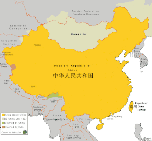 A República da China controla Taiwan, Penghu, Quemoy e Matsu e reivindica oficialmente toda a China continental e a Mongólia exterior. A RPC considera a República da China ilegítima e tem ameaçado invadir Taiwan de forma declarada a fim de se instaurar a independência da ilha. (ver Estatuto de Taiwan)