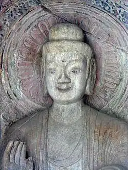 A Gruta de Guyang foi anteriormente construída entre as grutas de Longmen. Três estátuas de budas na parede do fundo, a maior com 6,12 metros de altura, fica no centro, com expressão magra, enquanto as outras duas, nos dois lados, como se fossem ministros. Segundo historiadores, as imagens de estátuas dessa gruta são um pouco diferentes de outras regiões, pois muito provavelmente, essas imagens copiaram o imperador Xiaowen da Dinastia Wei do Norte.