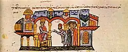 Leão VI recebeu uma delegação búlgara. Iluminura do Escilitzes de Madri