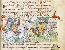Conflito entre búlgaros e bizantinos em 914. Iluminura da Crônica de Conisberga
