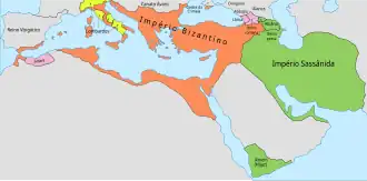 - [b] ^ A guerra havia começado originalmente quando Justino II recusou-se a pagar aos sassânidas o usual tributo que data da época de Justiniano. A conclusão bem-sucedida da guerra fez com que o tributo não fosse mais pago.[202]