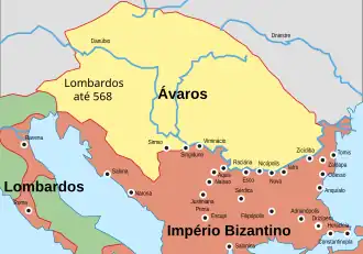 Enquanto os bizantinos estavam ocupados com os persas, os ávaros e eslavos invadiram os Bálcãs, capturando várias cidades bizantinas, incluindo Singiduno, Viminácio, Naísso, Sérdica, e destruíram Salona em 614. Isidoro de Sevilha afirma que os eslavos tomaram a "Grécia" dos bizantinos. Os ávaros também começaram a invadir a Trácia, ameaçando o comércio e a agricultura, até as proximidades dos portões de Constantinopla.[95] Contudo, inúmeras tentativas por parte dos invasores para tomar Tessalônica, a cidade bizantina mais importante dos Bálcãs depois de Constantinopla, terminaram em fracasso, permitindo ao império manter um reduto vital da região.[96] Outras cidades menores da costa adriática como Jadar (Zadar), Tragúrio (Trogir), Bútua (Budva), Escodra e Lísso (Lezhë) também sobreviveram as invasões.[97]