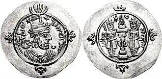 Os sassânidas, por outro lado, lutaram para estabelecer um governo estável. Quando Cavades II morreu apenas alguns meses após ascender ao trono, a Pérsia foi sacudida por vários anos de tumulto dinástico e guerra civil. Artaxer III (r. 628–629), Sarbaro (r. 630), e as filhas de Cosroes Borana (r. 630–631) e Azarmiducte (r. 630–631) sucederam-se no trono dentro de poucos meses uns dos outros. Apenas quando Isdigerdes III (r. 632–651), neto de Cosroes II, sucedeu no trono em 632 o Império Sassânida foi estabilizado, mas naquele tempo era tarde demais para salvar o Estado persa.[159][160]