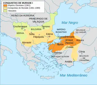 Depois de uma trégua temporária depois de 1373, em 1380 os otomanos reiniciaram as hostilidades. Com um grande exército, Murade seguiu para a região sudoeste do Czarado de Tarnovo com o objetivo de tomar Sófia. Depois de sangrentos combates no vale do Zlatistsa,[33] os turcos cercaram a cidade, que era comandada pelo bano Yanuka. Ele conseguiu repelir todos os ataques das forças otomanas lideradas por Lala Shain Paxá, muito superiores. O general otomano não conseguiu manter o cerco e foi forçado a recuar para Odrin, onde teve que relatar seu fracasso ao sultão. Na sua ausência, os turcos conseguiram se infiltrar em Sófia e um búlgaro muçulmano capturou o bano Yanuke numa caçada e o enviou para Lala Shain, que estava em Plovdiv. De lá, o comandante búlgaro foi enviado de volta para Sófia e, quando os defensores viram o seu líder aprisionado, renderam-se (1382).[34]