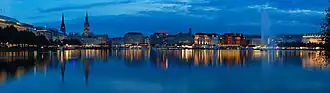 A área central da cidade situa-se em volta do ‘’Binnenalster’’ ("Alster interior") e o ‘’Außenalster’’ ("Alster exterior") sendo ambos lagos formados pelo rio Alster.