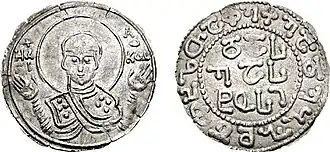 ![]() Fragmento de um afresco no mosteiro de Oshki, possivelmente representando o casamento de Helena e Pancrácio IV[1] | |