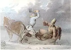 | “ | Agora o bispo está na alegria, Lalli no mal tortura. O bispo canta com os anjos, Executa um hino alegre. Lalli está esquiando no inferno. Seu esqui esquerdo desliza por aí. Em meio à fumaça espessa de tortura. Com seu pessoal ele fere: Os demônios o atormentam cruelmente. No sufoco do inferno Eles atacam sua alma penosa. |
