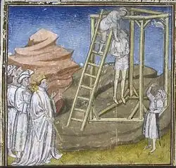 ![]() Herbert II de Vermandois enforcado por ordem de Luís IV de França. | |