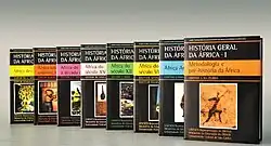 | “ | ...obra, que reúne em oito volumes uma história do continente contada a partir da visão africana e sem o eurocentrismo que predomina na historiografia da região. A coleção foi publicada originalmente em inglês e francês, a partir da década de 1980. | ” |