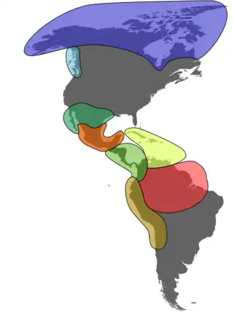 Não há consenso geral sobre a origem dos ameríndios. A teoria mais aceita é a postulada por Aleš Hrdlička, que, retomando o argumento de Samuel Haven,[7] argumentou que os seres humanos haviam entrado na América pelo Alasca, vindos da Sibéria cruzando o Estreito de Bering. Acredita-se que a possível data do primeiro povoamento das Américas foi 33.000 anos atrás.[8]
