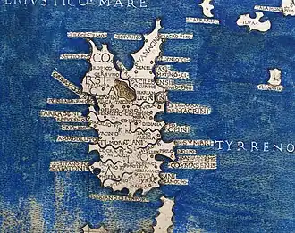 Em 150, o geógrafo Ptolomeu em sua obra cartográfica fez uma descrição apurada da Córsega pré-romana, listando oito rios principais (entre os quais o Govola-Golo e o Rhotamus-Tavignano), 32 centros habitados e portos - entre os quais Centurinon (Centuri), Canelate (Punta di Canelle), Clunion (Meria), Marianon (Bonnifacio), Portus Syracusanus (Porto Vecchio), Alista (Santa Lucia di Porto Vecchio), Philonios (Favone), Mariana, Aleria -, e doze tribos autóctones (em grego, latim e a sua localização):