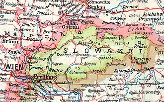 A história da Eslováquia diz respeito à trajetória do povo eslovaco do século V aos dias atuais. A população eslava original radicou-se na área onde hoje fica a Eslováquia no século V. A Eslováquia fazia parte do centro do império de Samo no século VII. O ponto mais alto do estado proto-eslovaco do século IX conhecido como Grande Morávia deu-se com a chegada de Cirilo e de Metódio e com a expansão no reinado do rei Zuentibaldo I. A Eslováquia acabou por se tornar parte do reino da Hungria entre os séculos XI e XIV e foi, mais tarde, parte da Áustria-Hungria até 1918. Nesse ano, a Eslováquia juntou-se às regiões da Boémia e da vizinha Morávia para formar a Checoslováquia. Com a separação do país que se seguiu ao Acordo de Munique de 1938, a Eslováquia transformou-se numa república separada, embora debaixo de um controlo firme por parte da Alemanha Nazi.