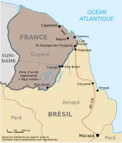 Em 1938, uma comissão franco-holando-brasileira determinou o ponto de junção das três fronteiras francesa, surinamesa e brasileira.