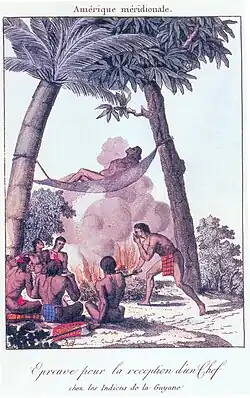 Mais de dezenas de nações ameríndias constituíram conjuntamente ou sucessivamente a população nativa da Guiana Francesa e do atual estado brasileiro do Amapá ao longo de 400 anos. Ao final do século III, vindos do oeste e do sul, os índios aruaques e palicures, estes últimos provavelmente originários da Amazônia, chegam ao litoral e perseguem os primeiros habitantes. Os invasores falavam línguas da família linguística aruaque. Já no final do século VIII, os índios caraíbas, as tribos kaliñas (ou galibi) e os wayanas ocupam todo o entorno do litoral e do leste da atual Guiana. Estes são falantes das línguas carib.